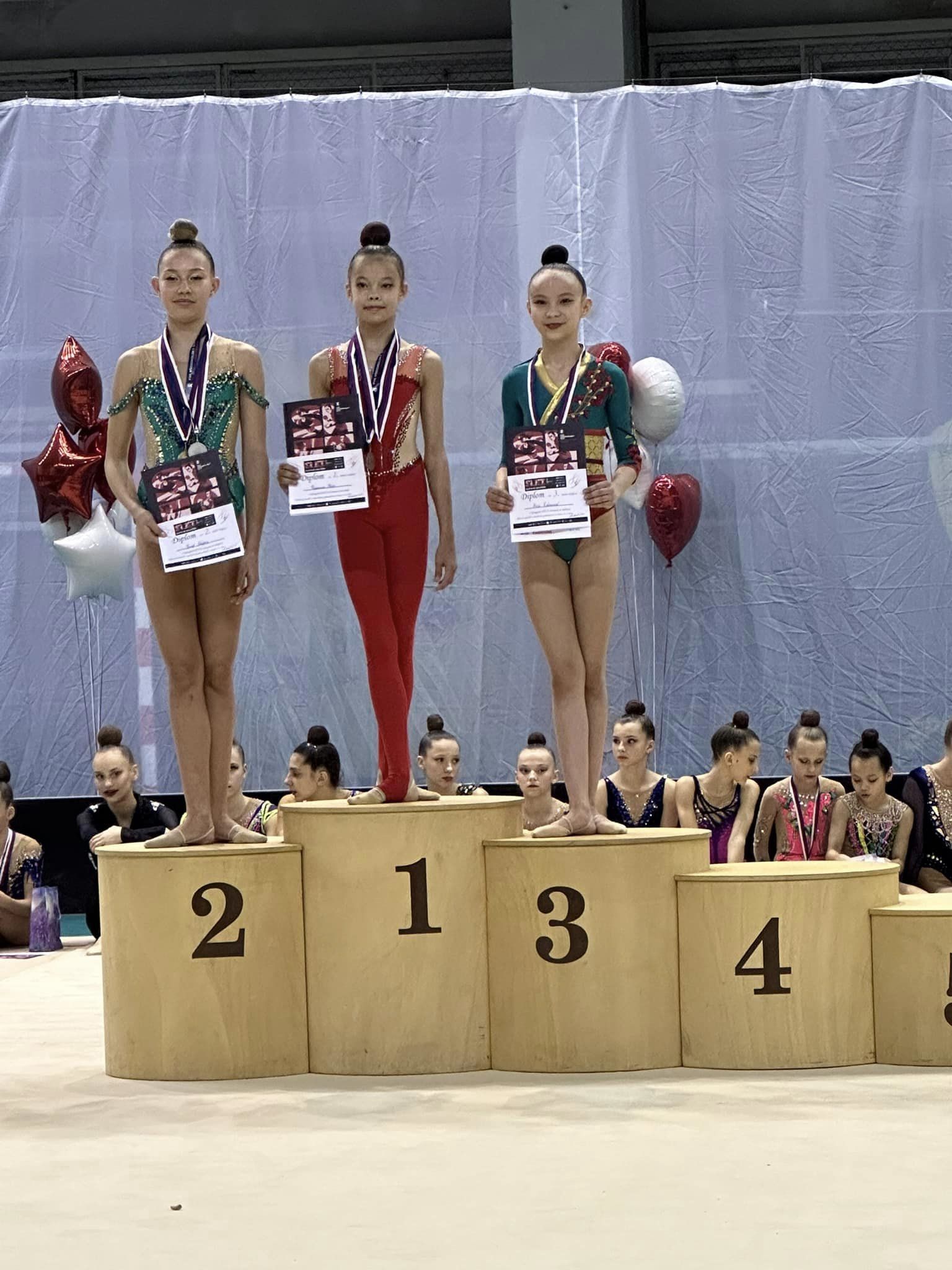 Sletový závod, byl zakončen ve 23.00hod., a opět se můžeme radovat, mladičká talentovaná naděje starší A 2012, která začala teprve v současné době závodit v kat. A mezinárodního programu VIKY BUREŠ v sestavě s míčem získala 1. místo a zlatou medaili, v sestavě se stuhou pak 2. místo a stříbrnou medaili, celkově se Viky umístila na skvělém 2. místě, je to skvělý výsledek, Viky šla svoje nejnovější sestavy, ty dnes měly premiéru a poprala se s tím fantasticky.